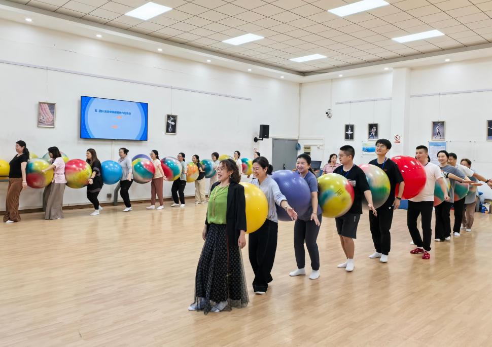 沙龙还设置了团队活动环节。教师们分组进行健康球接力、平衡挑战等趣味游戏,不仅锻炼了身体协调性,还增强了团队协作意识。在欢声笑语中,大家感受到了运动带来的快乐和满足,也深刻体会到了团队协作的重要性。