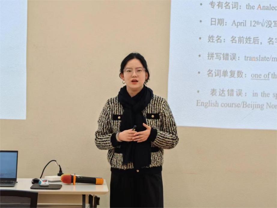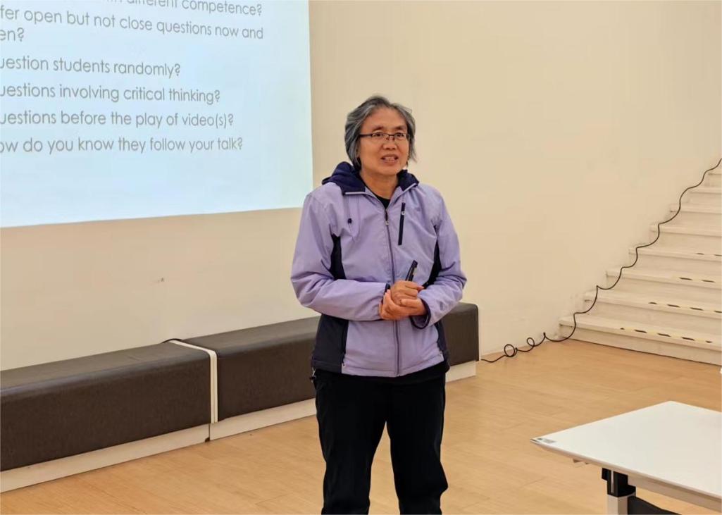 接下来,马磊老师从“what to teach”和“how to teach”两个方面做具体分享。在“教什么”方面,她认为老师们在引导学生关注学科本位以外,更要重视培养其终身学习的兴趣、批判性思维以及爱心、同理心等人文精神;在“如何教”方面,她介绍在课堂布置、肢体语言、ppt制作、紧急事件处理等方面的技巧,从而达到多方面增强学科教学张力的效果。还从教学督导的角度,在教学方法、教学内容、教学效果等多个方面对老师们做更详细地指导。