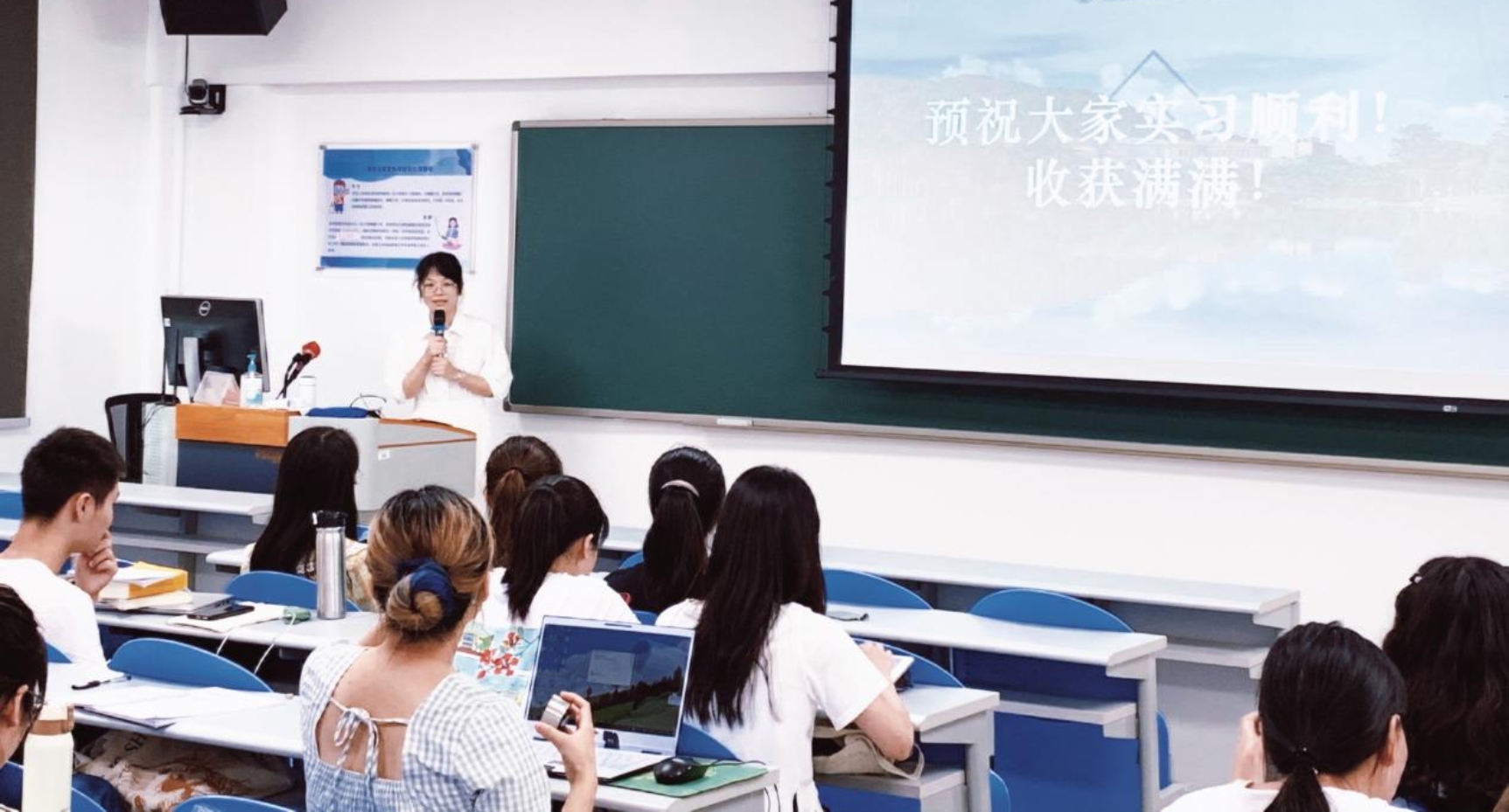黄广连老师希望同学们摆正心态,以积极、热情、主动的姿态向一线教师学习,协调好与同学、同事、领导的关系,在确保自身安全的情况下圆满完成实习任务,达成考核目标。
