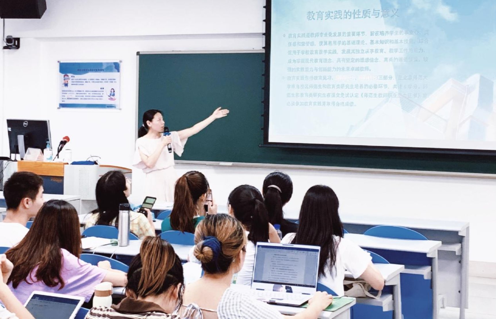 张尧娉老师详细解读了我校有关教育实践的制度文件,介绍了教育实践的考核要求和考核办法,明确了教育实践的内容和任务。张老师特别强调了教育实践过程中的安全、纪律要求。