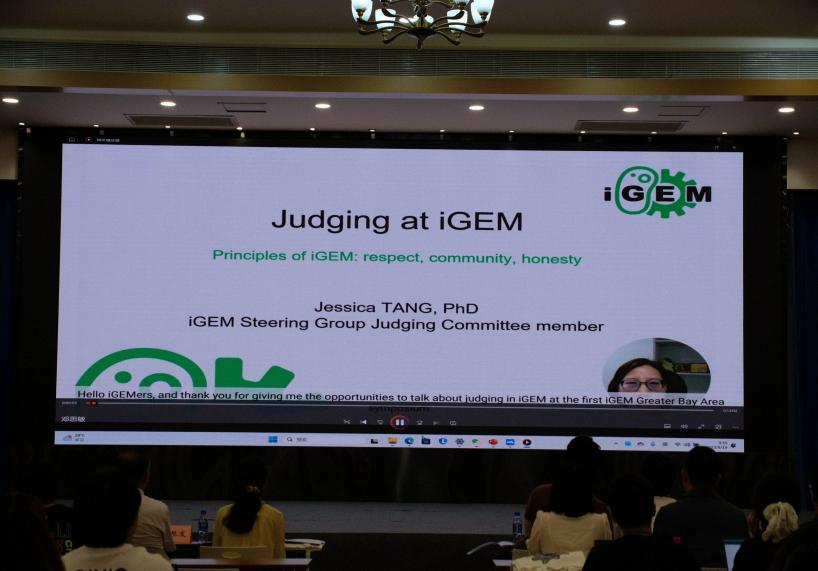 hkust的邓思敏博士向大家介绍了igem竞赛的评判要求,给参赛团队提出了宝贵建议,同时表达了对各团队的鼓励与祝福。